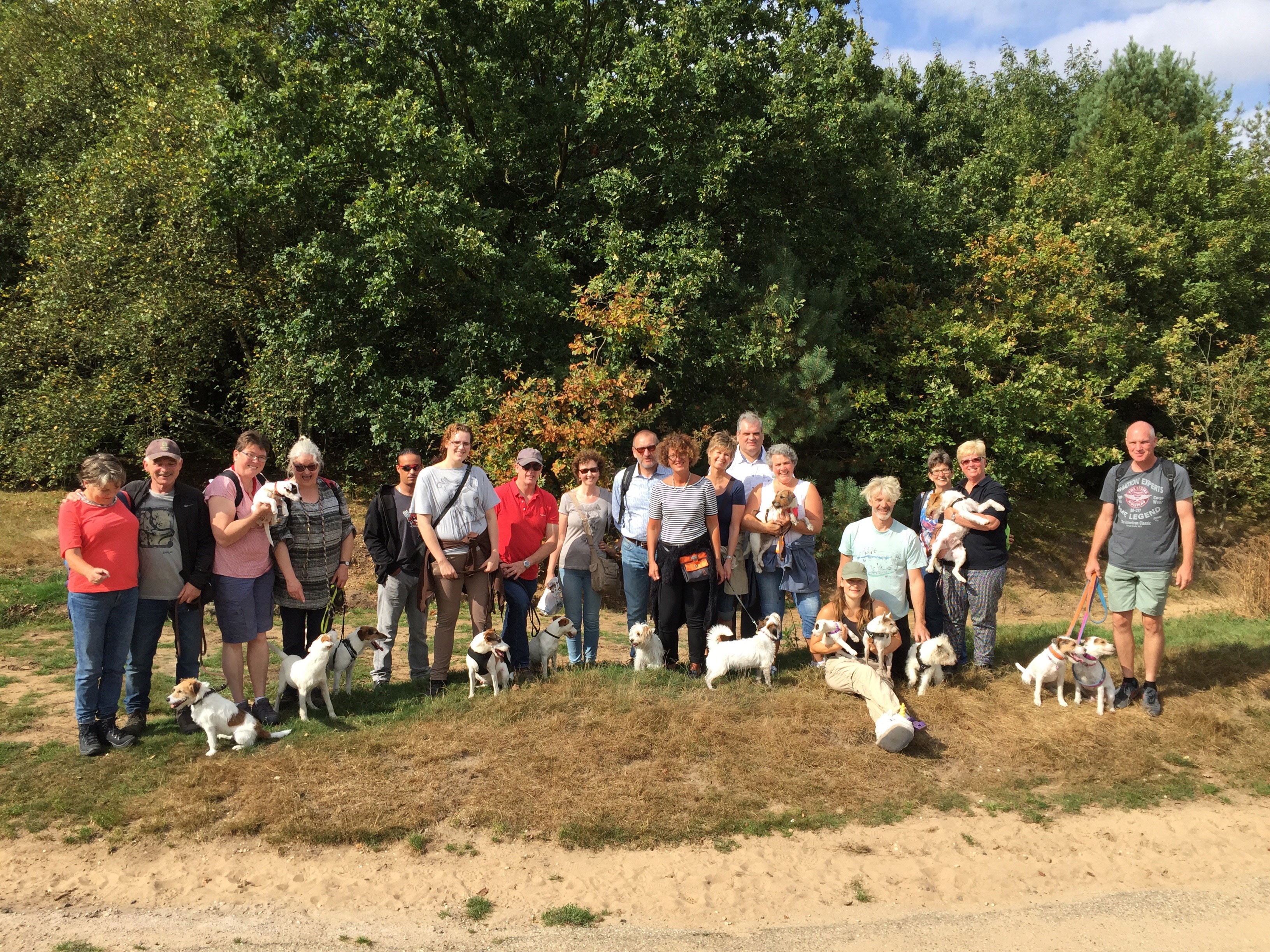 Mittags versammelten sich die Wanderer und ihre Hunde auf dem belebten Parkplatz am Driebergweg in Ede. Dort wurden sie mit Kaffee / Tee und Kuchen empfangen. Die Taschen mit den Lunchpaketen und ein Leckerbissen für die Hunde wurden ebenfalls verteilt. Als alle versorgt waren, machten wir uns auf den Weg.